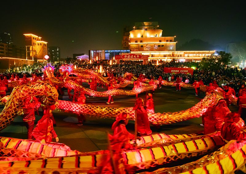 正月初六晚,“非遗过大年”国家级非遗王贵武龙灯展演在华新1907文化公园举办。活动现场,长达350米的王贵武龙灯震撼登场,精彩表演赢得阵阵喝彩。