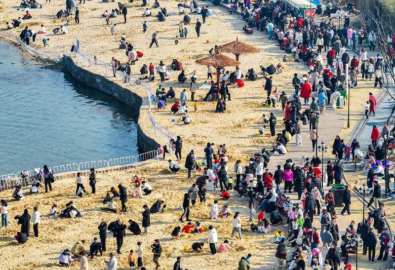 正月初二,市民在未苏湾乐享春节假期。