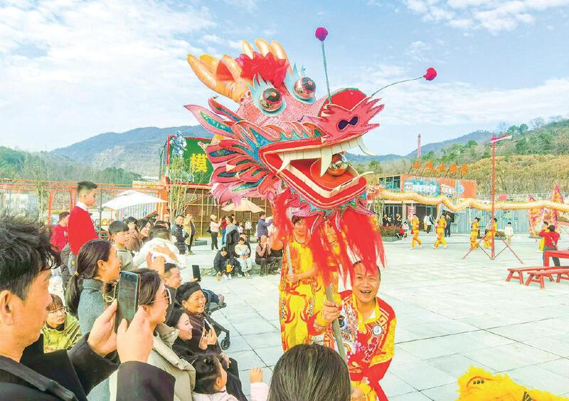 正月初二,在黄石国家矿山公园,舞龙舞狮团队带来精彩表演。