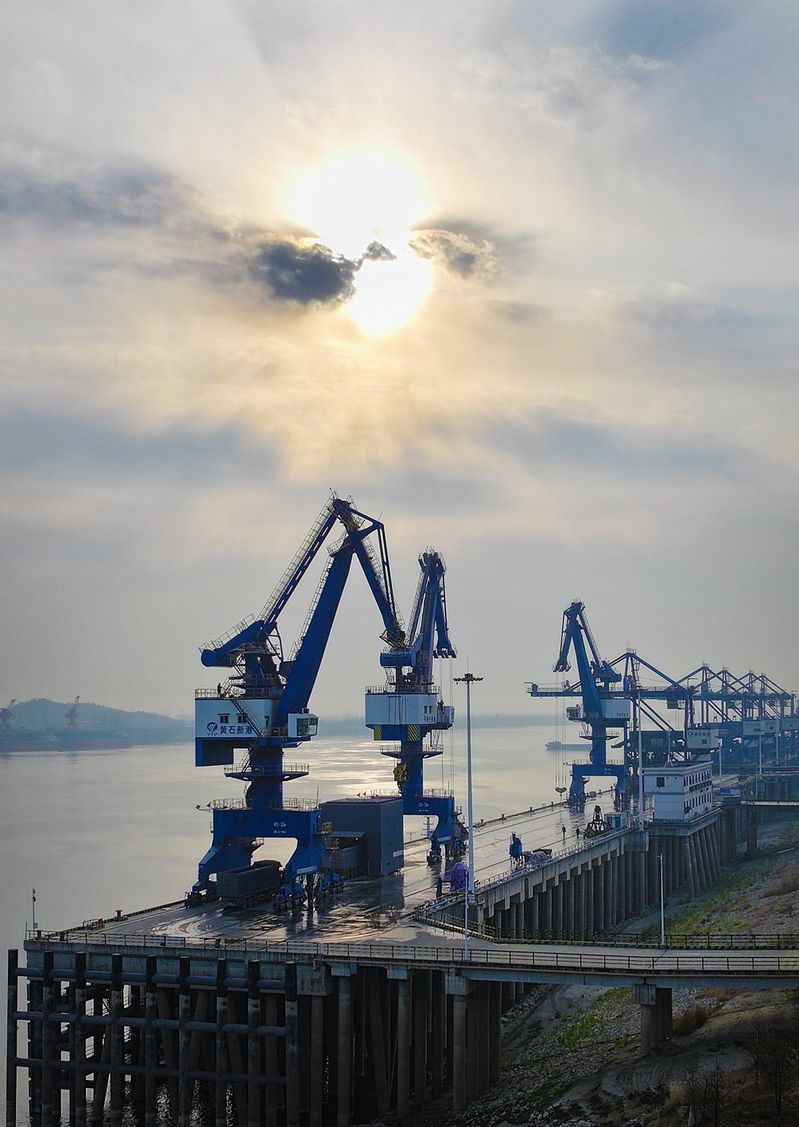 黄石新港码头一轮红日冉冉升起