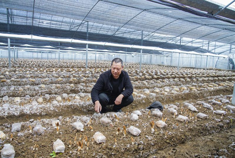 大箕铺镇方至畈村大棚蔬菜种植基地,羊肚菌抢“鲜”上市,村民采摘忙。