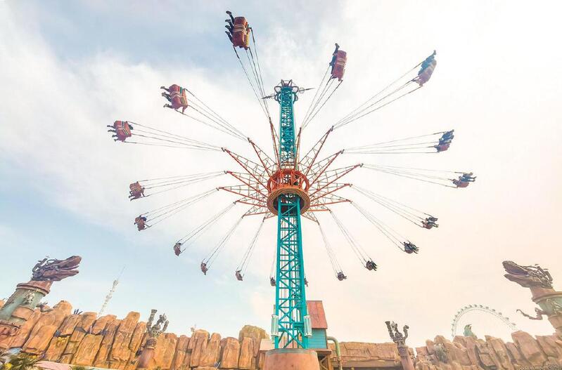 正月初六,游客在黄石华侨城恐龙奇域旅游度假区体验游乐项目。