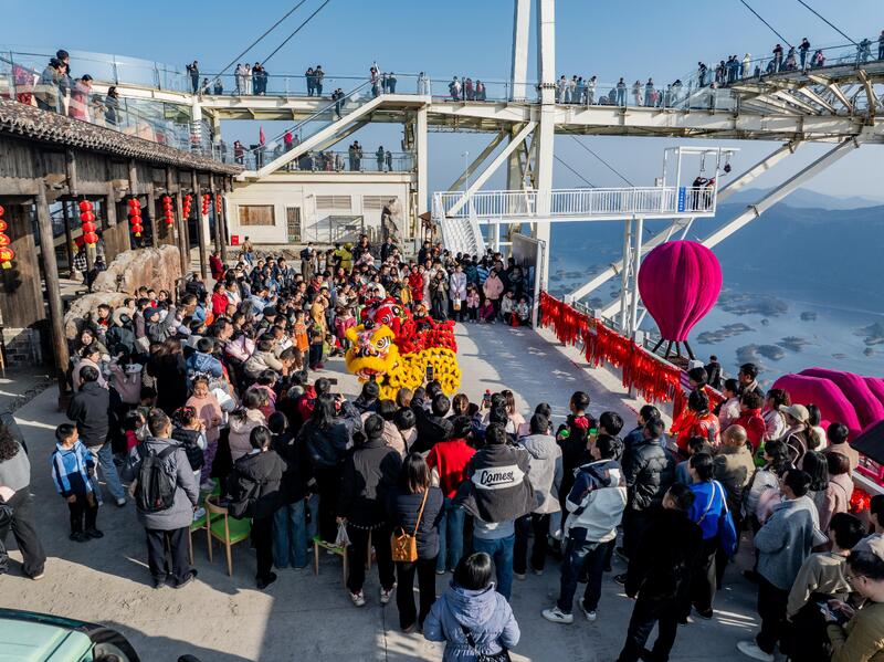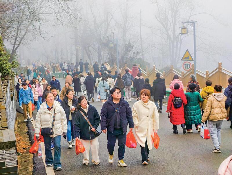 正月初五,游客齐聚东方山风景区,共祈美好,同度新春。