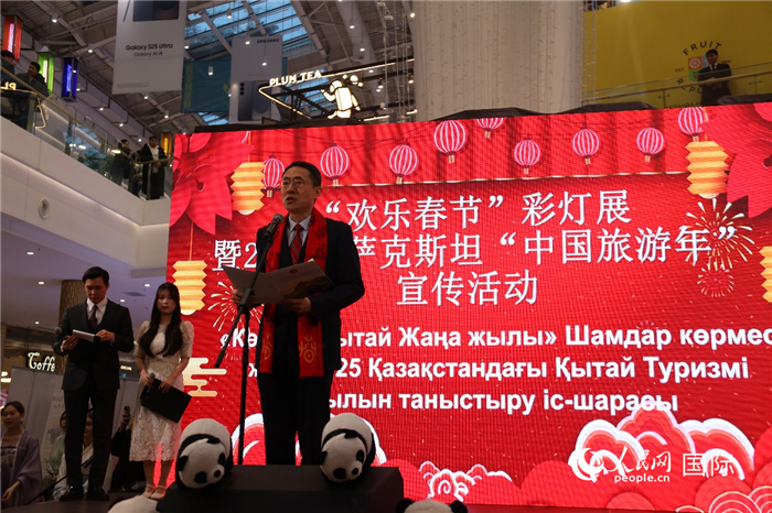 人民网阿斯塔纳2月8日电 (记者李强)2月8日,“欢乐春节”彩灯点亮仪式暨2025年哈萨克斯坦“中国旅游年”宣传活动在阿斯塔纳“MEGA”丝路商场举行,中国驻哈萨克斯坦大使韩春霖出席并致辞,阿斯塔纳市政府代表、各界友人、在哈华侨华人、孔子学院和留学生代表等200余人参加了此次活动。