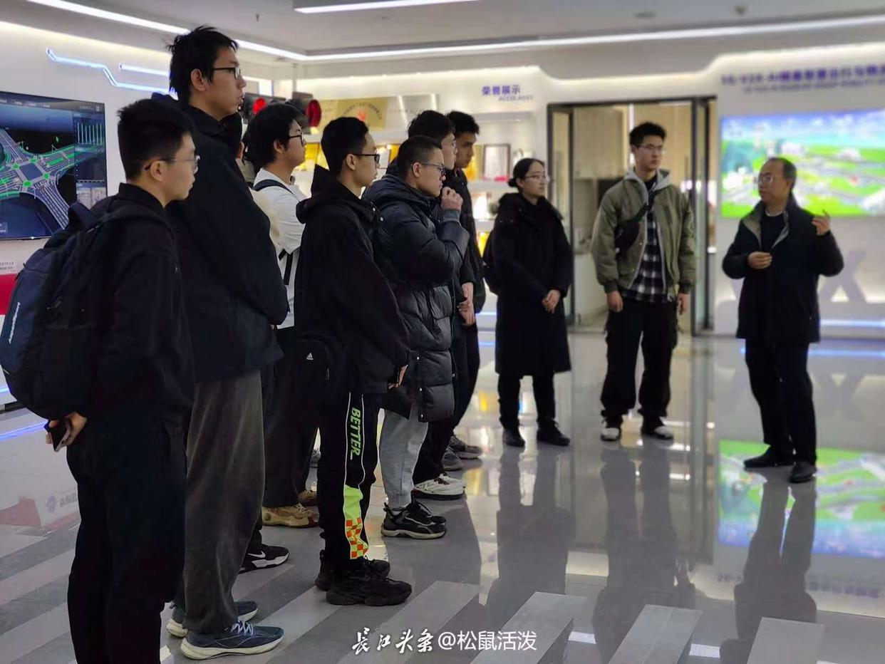 在武汉大学遥感信息工程学院,高精度地图的构建、动态数据采集技术以及遥感数据与AI分析的结合,为车路协同系统提供了精准的时空信息,技术如何改变社会真真切切地展现在队员们面前。队员们感叹:“这些前沿技术不仅让我们对智慧交通的未来充满期待,也让我们深刻体会到科技创新在城市发展中的重要作用。”