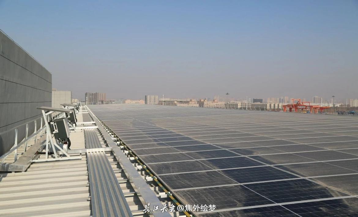 清华大学“荆楚绿韵,低碳清行”实践支队在武汉汉欧国际物流园区看到的光伏板。