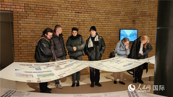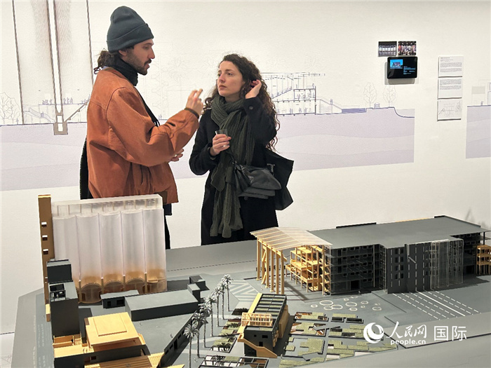 观众正在看展览中的深圳荷水基地建筑项目。人民网记者 徐馨摄