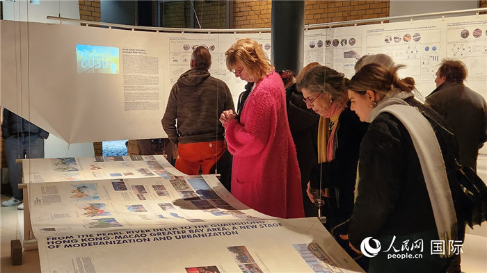 观众正在观看深圳大学粤港澳大湾区创新设计实验室的研究成果“水与城市化:深圳案例”。人民网记者 刘仲华摄
