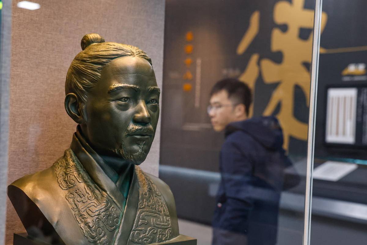 云梦县博物馆展示的睡虎地秦简主人“喜”的复原像。(湖北日报全媒记者 倪娜 摄)
