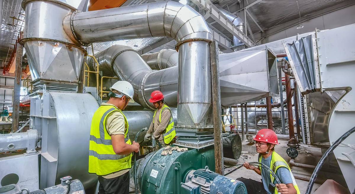 湖北金博士新材料科技有限公司新建的车间内,技术人员正忙着调试造纸设备。(视界网 晏美华 摄)