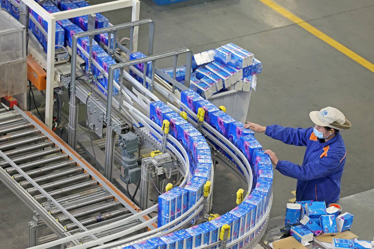 孝感市孝南区维达护理用品公司生产线上,智能自动化设备正高效运转,员工穿梭其间,忙碌有序。(湖北日报全媒记者 倪娜 摄)