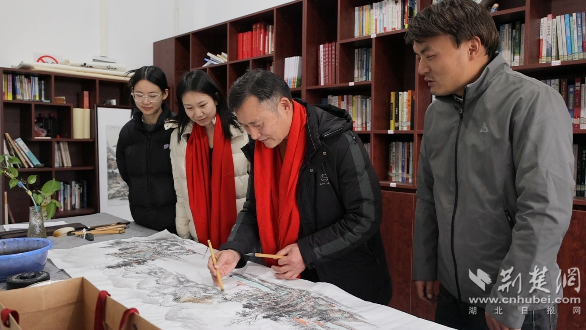 彭建勋与同事讲解作画技巧。通讯员 供图