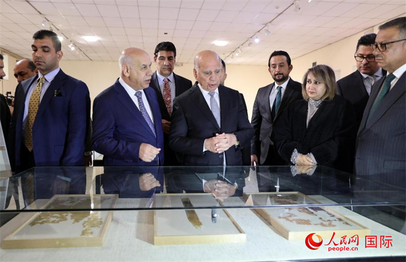 侯赛因(右5)与巴德拉尼在观看归还文物。人民网 伊纳斯·易卜拉欣摄