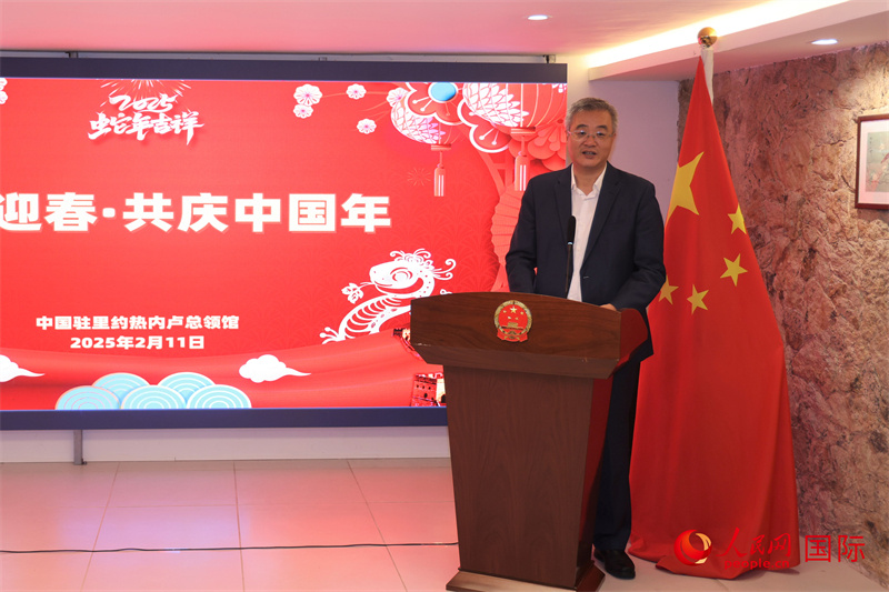 中国驻巴西大使祝青桥在“温暖迎春·共庆中国年”活动中致辞。人民网记者 时元皓摄