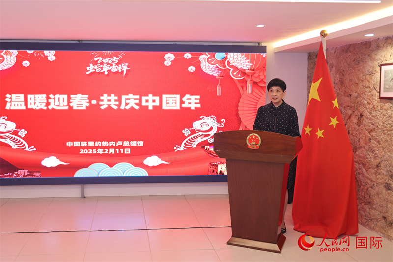 中国侨联文化交流部副部长车壮丽在“温暖迎春·共庆中国年”活动中致辞。人民网记者 时元皓摄
