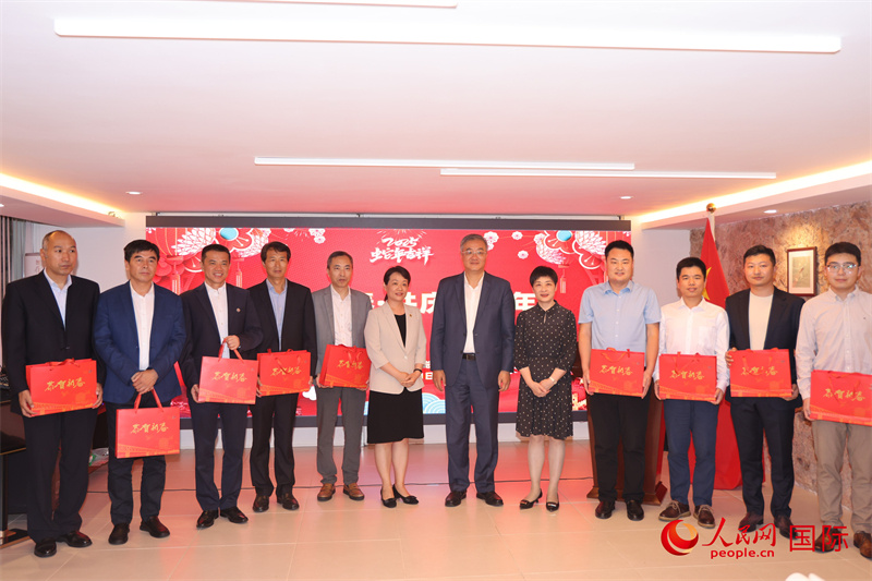 在巴中资机构代表领取新春暖心包。人民网记者 时元皓摄