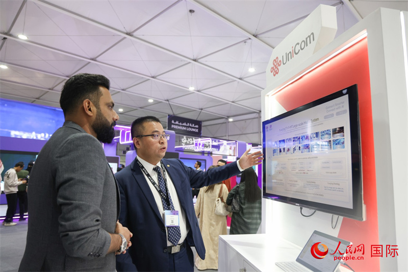 观众在中国联通展台参观交流。人民网记者 任皓宇摄