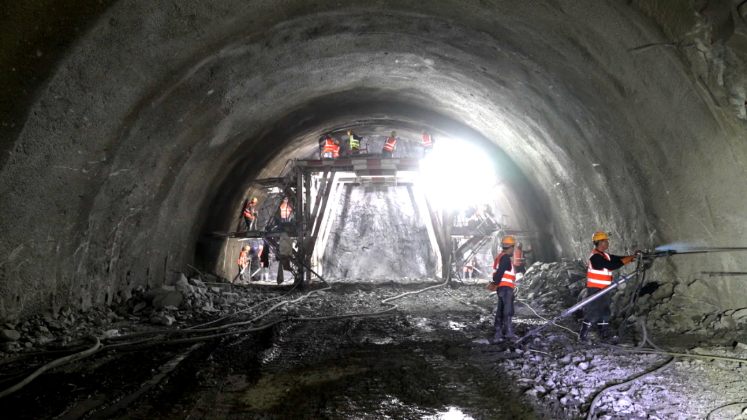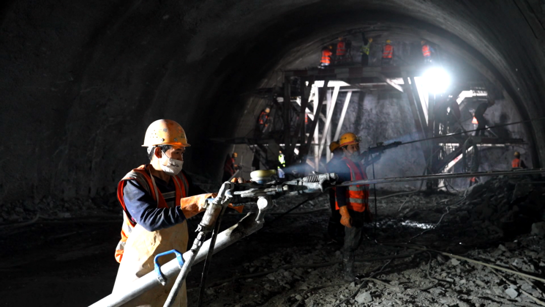 2月12日,房五高速(房县至五峰)兴长段草池坪特长隧道施工现场一片热火朝天的景象。自2月5日(正月初八)复工以来,施工单位在确保工程安全和质量的前提下,开启了“5+2”“白加黑”作业模式,抢工期、赶进度,全面掀起大干快上的热潮。截至目前,草池坪特长隧道已掘进突破2千米。