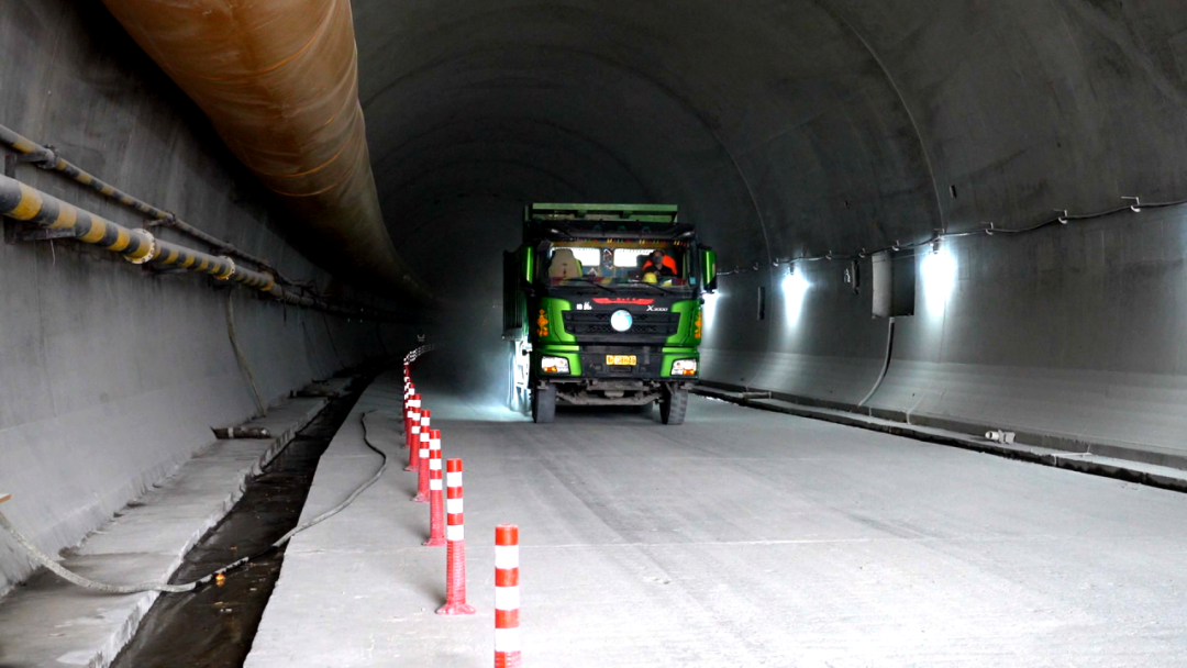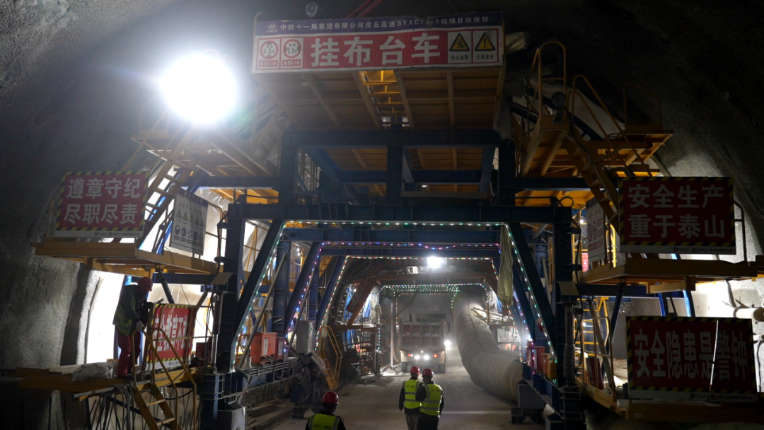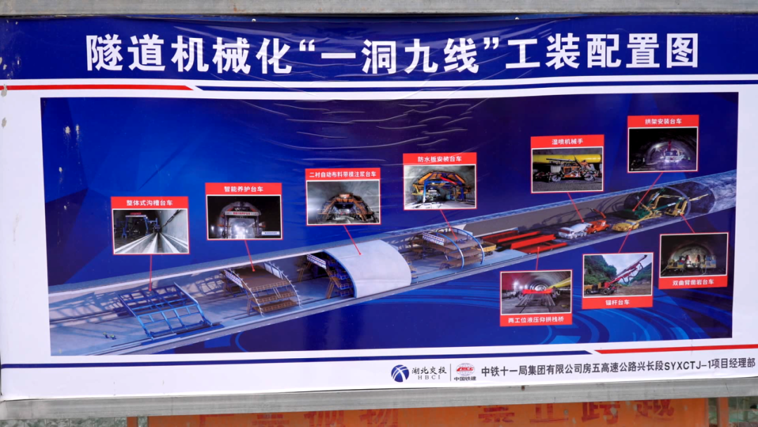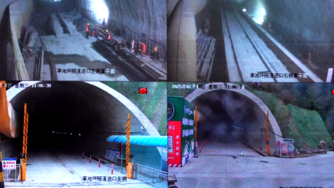 2月12日,记者在房五高速兴长段草池坪特长隧道施工现场看到,运输车辆来往穿梭,机器轰鸣声此起彼伏,工人们戴着安全帽,穿着反光马甲,紧张有序地进行着各项施工。