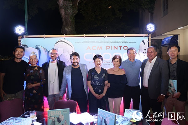 中海油巴西公司赞助出版的中葡双语漫画书《中海油——未来智星》第1卷发布会现场,作者(左一)在为领取图书的嘉宾签名。人民网记者 时元皓摄
