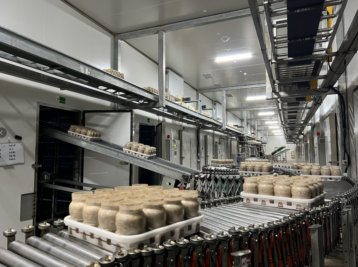 走进湖北新代米生物科技有限公司的生产车间,一瓶瓶金针菇搭乘车间的全自动运输装置,从育种车间进入菌菇房培养,再从菌菇房进入采摘车间进行成品切割,最后从采摘车间进入包装车间打包下线、出厂销售,流程井然有序、科学高效。