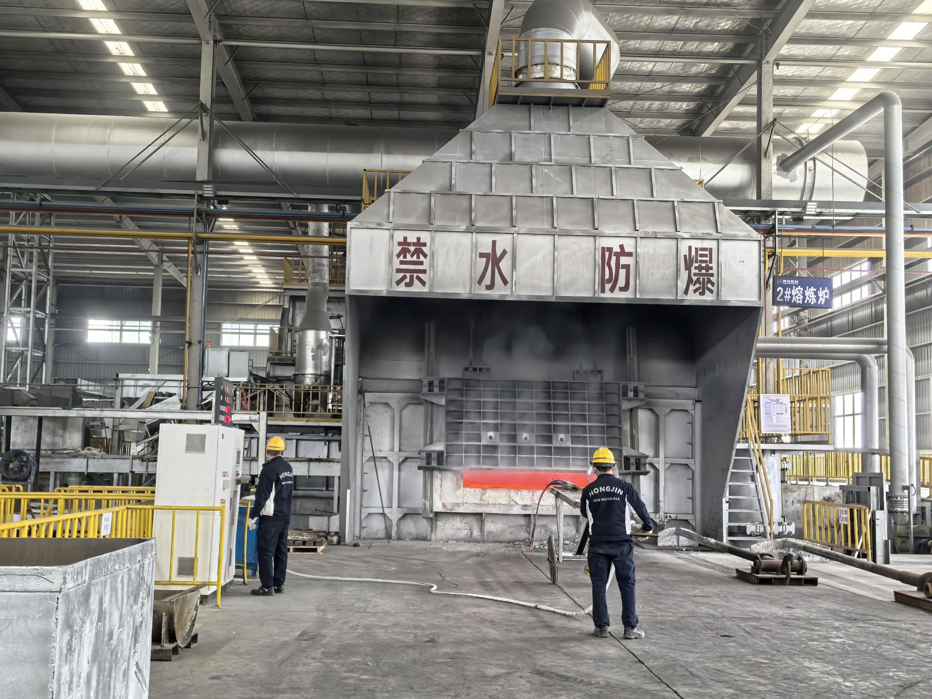 在华劲铝业的熔铝车间,2组熔炉火力全开,工人们正忙着把刚出炉的铝液浇铸成铝锭,4000吨铝锭订单等着月内完成交付。