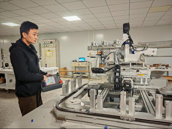 当天,在湖北锐丰达智能科技有限公司生产车间也是火热的赶工场景,技术人员正聚精会神地调试着设备,加班加点赶制订单。