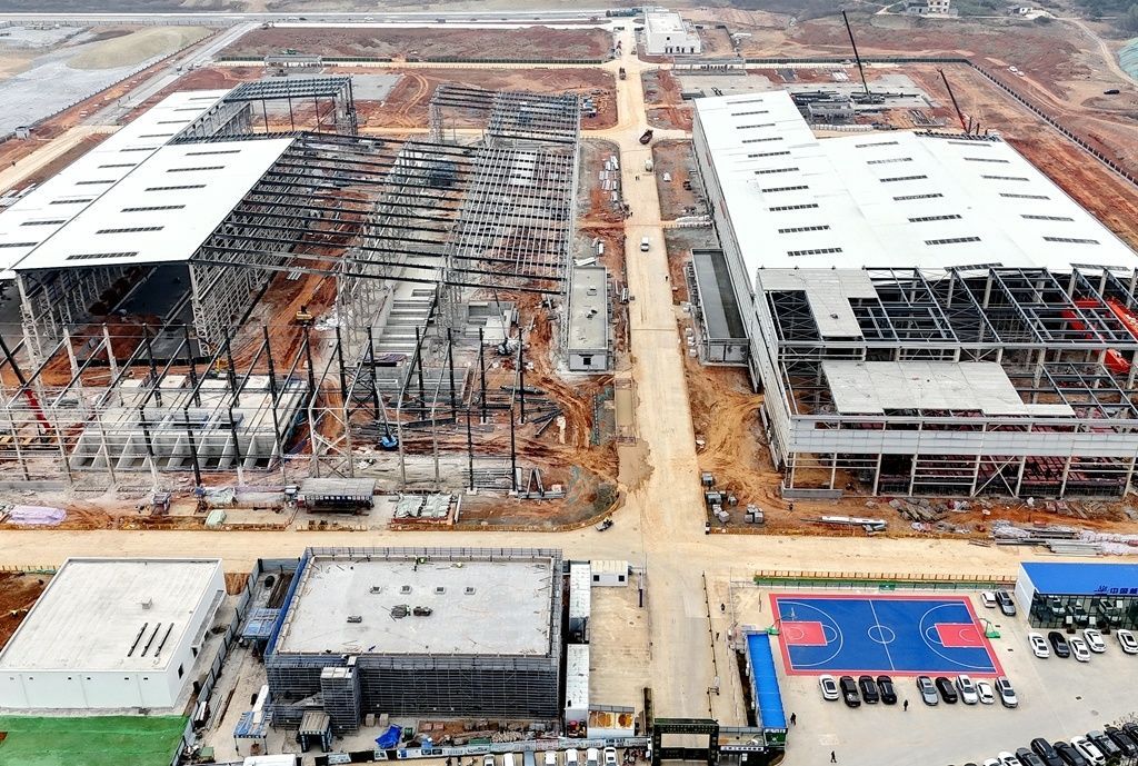 ▲宜昌船舶柴油机有限公司铸造中心项目现场,两间主体厂房正在加速建设,各式大型机械正开足马力,全力投入到项目建设中,现场还有近200名建筑工人分散在各施工区域,各司其职,干劲十足。