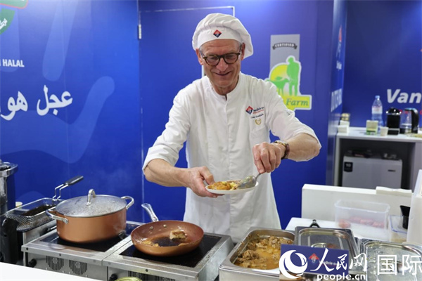 图为一位厨师在海湾食品展上为观众烹饪肉类食品。人民网记者 张志文摄