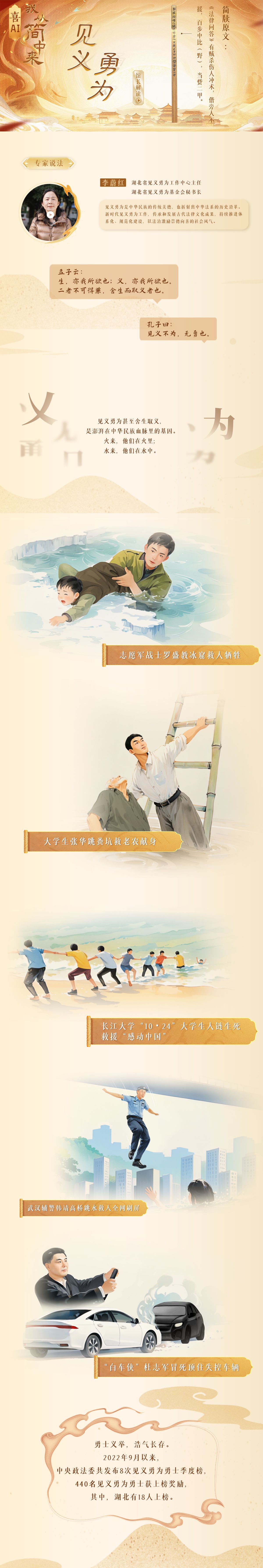 在湖北省见义勇为工作中心主任李蔚红看来,见义勇为是中华民族的传统美德,同时也折射出中华法系的历史沿革,从云梦睡虎地秦简可以看到,从秦代开始,就通过法律明确了对见义勇为行为的奖赏和对见危不救者的惩罚。