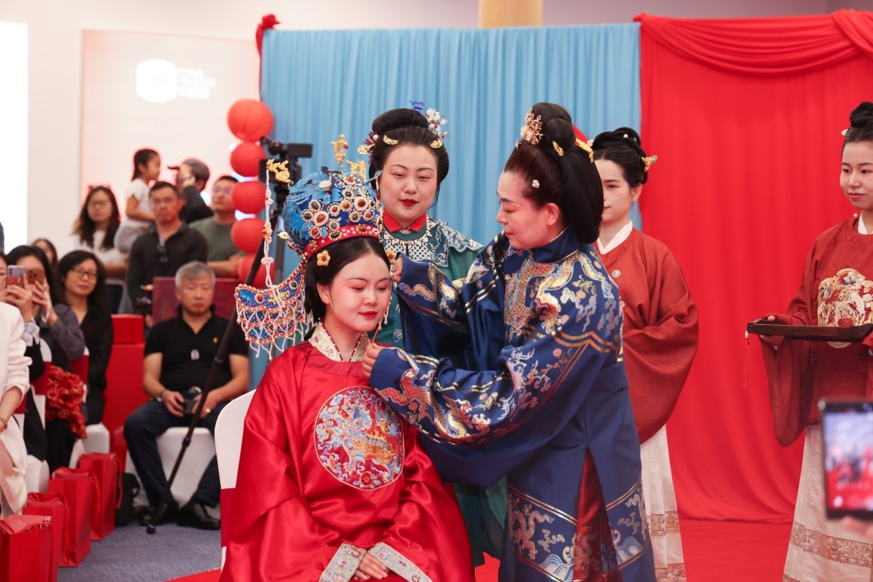 活动期间,嘉宾们共同欣赏了明代婚礼展演,体验了点茶、对弈、剪纸、投壶等中国传统文化活动。