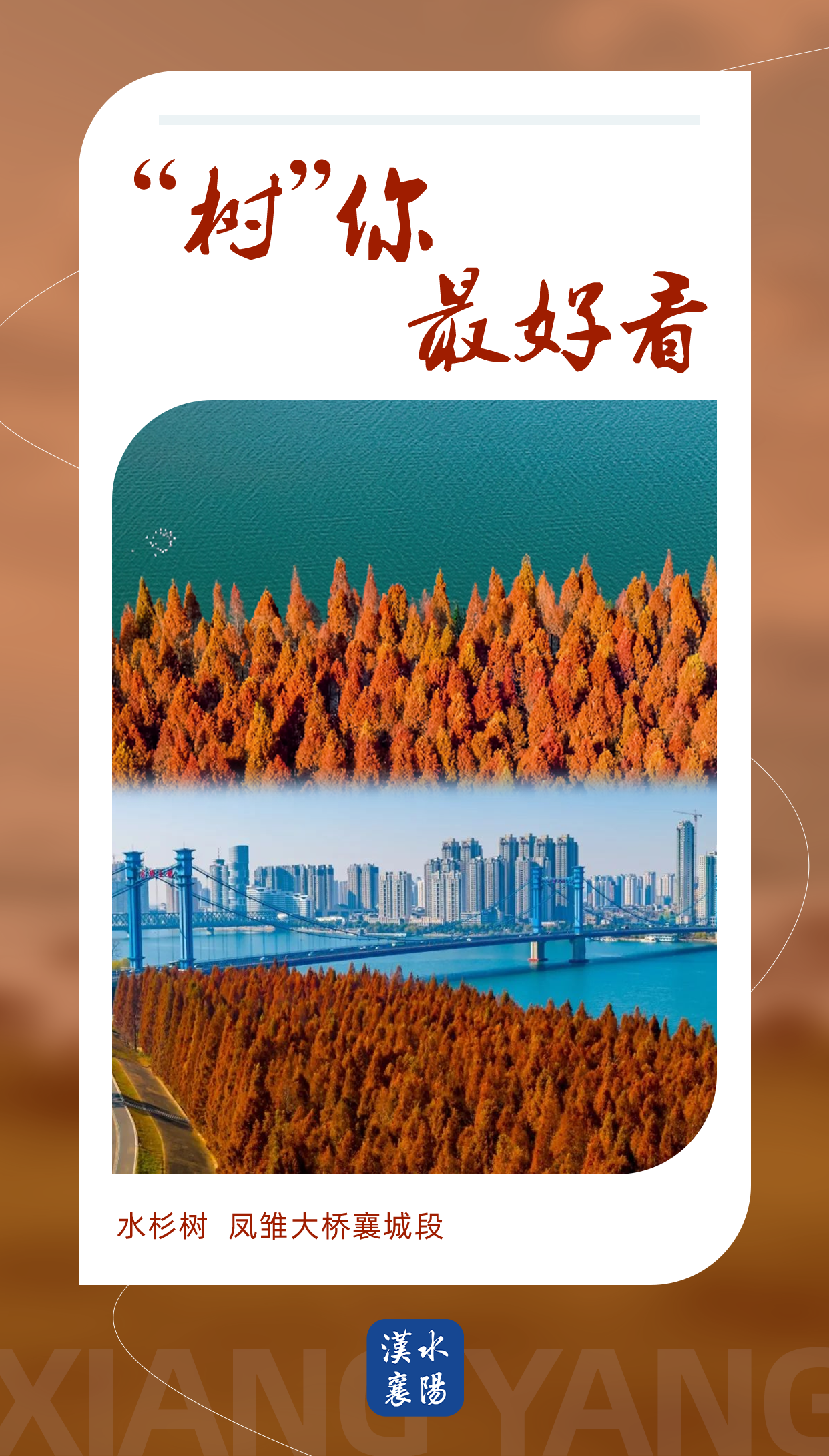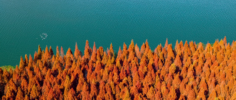 凤雏大桥襄城段一年四季都是市民的热门打卡点。夏天水天一色,树木葱绿,冬天又换了一种风格,别的树木已经枯萎,它却换上了一身红装,漫步其中仿佛置身梦幻的童话森林。整齐排列的水杉树被寒风蕴染成红褐色,宛若枕戈待旦的卫士,与蜿蜒的大堤共同守护着一江碧水,别有一番风味。