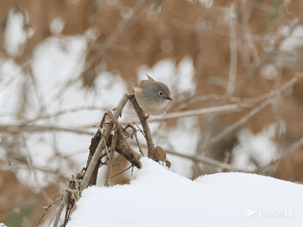鸟儿轻盈地落在积雪的枝头