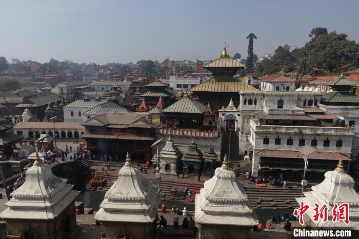 当地时间2月4日,尼泊尔加德满都巴格马蒂河畔的帕斯帕提那神庙(俗称“烧尸庙”)。 中新社记者 崔楠 摄