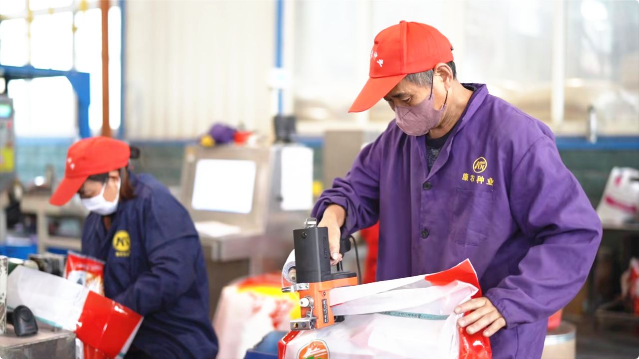 ▲康农种业的工人正在打包玉米种子。(通讯员盛克庆 摄)