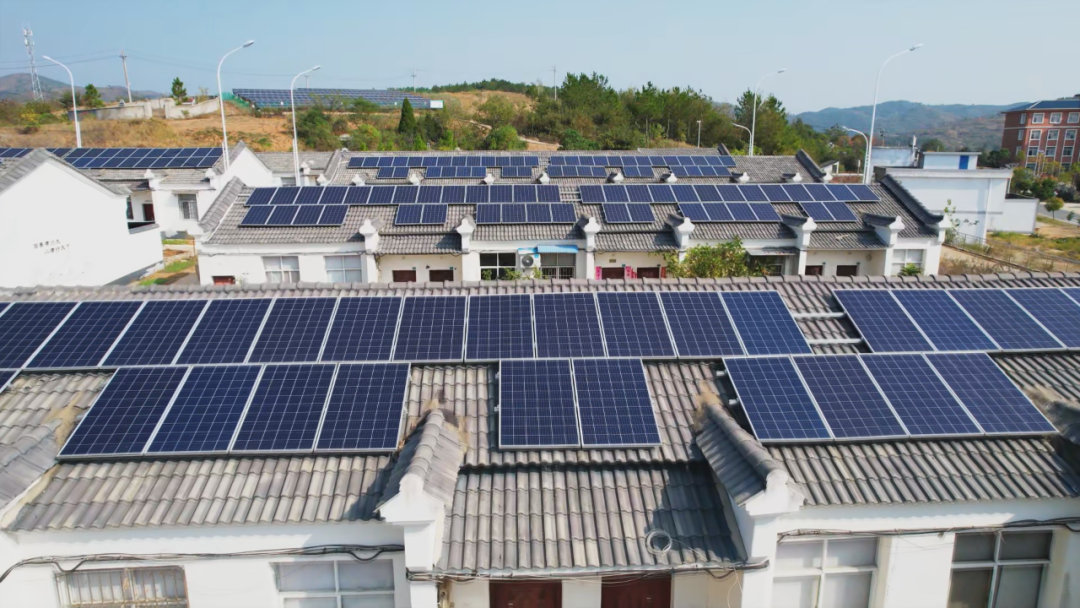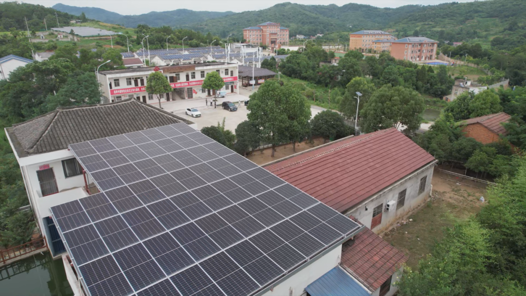 步入红畈村,山顶旋转的风机与屋顶连绵的光伏板构成独特风景线。在国网湖北省电力公司的支持下,红畈村建成省内首个村级“风、光、储、充”一体化的新能源汽车充电站,截止目前,红畈村的光伏、风电、沼气发电等新能源装机已达到1.051兆瓦,新能源装机正悄然改变村庄的能源结构。