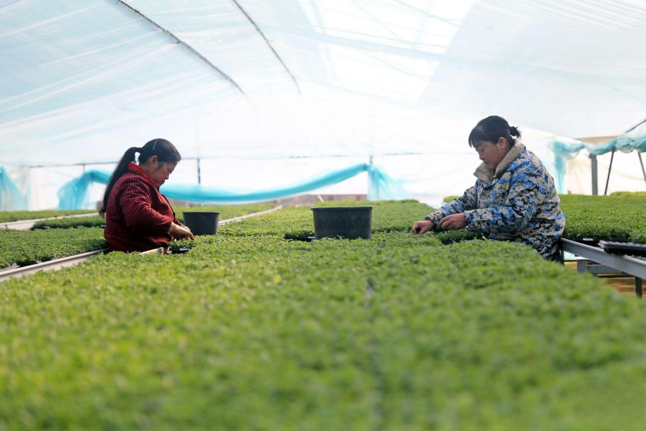最中间的育苗车间里,39岁的王艳正忙着给五一市场要用的角堇、凤仙移苗。这位曾经的留守儿童母亲,如今已是诚美农业“元老级”的长期工,“早上送完孩子上学再来上班,下午五点还能赶回家做饭。”
