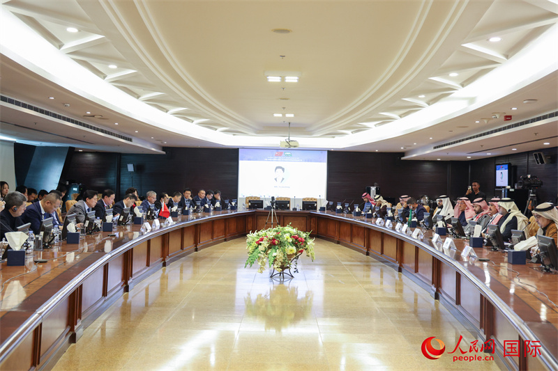 人民网利雅得2月26日电 (记者任皓宇)当地时间2月26日,中国—沙特企业家圆桌会暨第三届链博会推介会在沙特利雅得成功举行。中国贸促会副会长于健龙、中国驻沙特大使常华、中沙商务理事会主席穆罕穆德·艾尔·阿吉兰等出席活动并致辞。