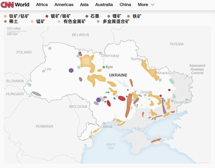 乌克兰主要矿产分布一览。图/美国有线电视新闻网