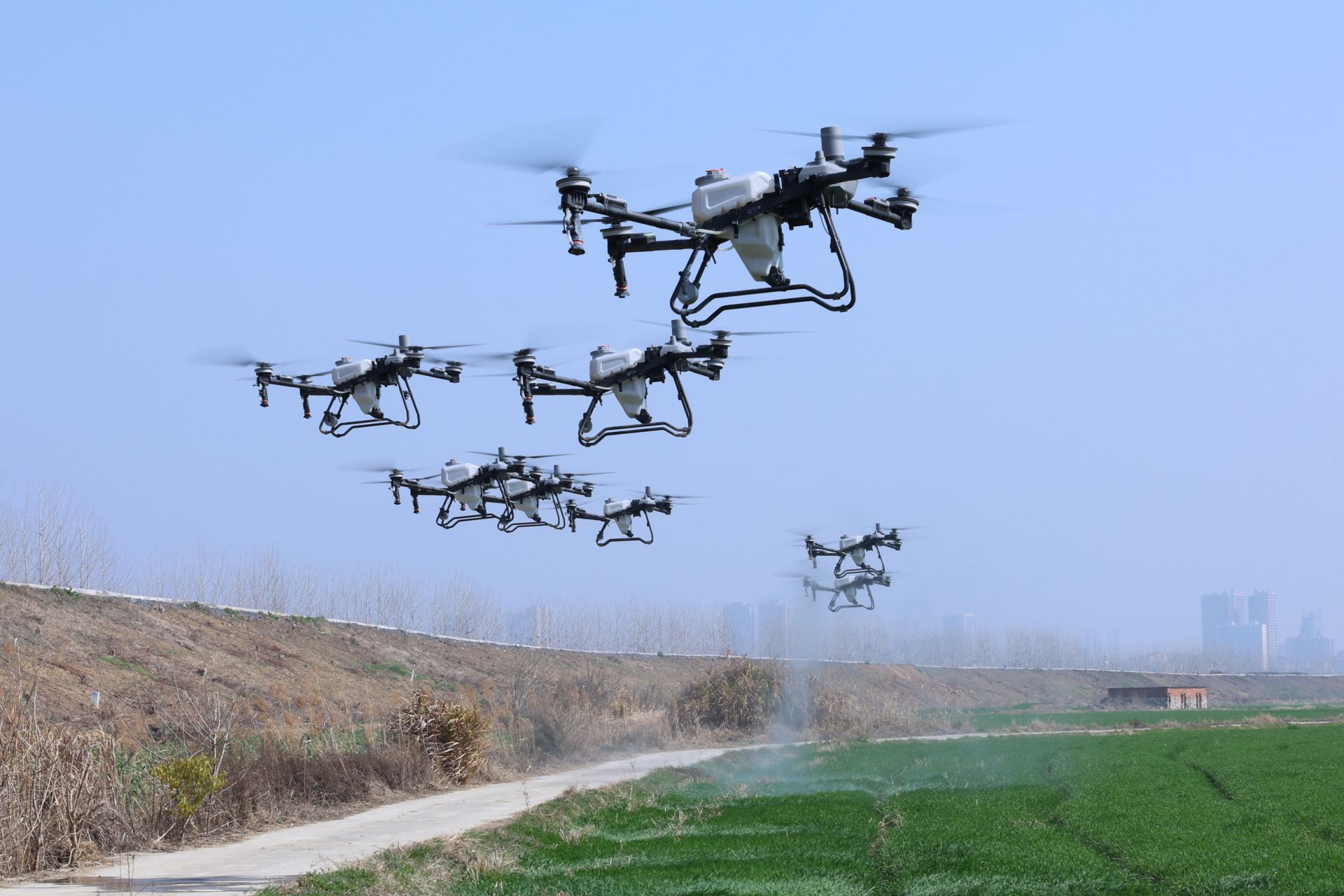 在富河岸边的无人机飞行点,10台植保无人机同时起飞,成为春耕现场的一大亮点。三农飞手介绍,这些无人机搭载高清摄像头和先进传感器,可精准识别病虫害和作物营养状况,并按照设定参数均匀喷洒农药和肥料。“一台无人机一小时可完成上百亩农田的作业,效率远超人工喷洒。”