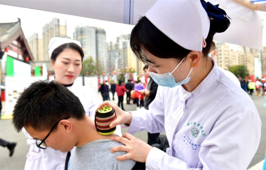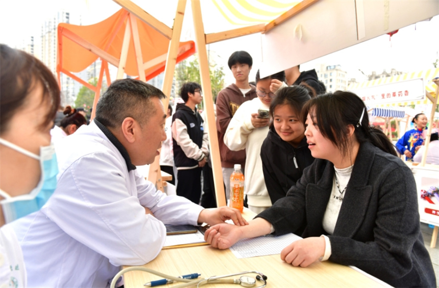 中医药文化集市是“社区文化节”的“招牌项目”。此次活动,咸宁市中医医院准备了32个中医摊位、50多人医疗团队为群众提供义诊服务。中医专家的义诊摊前排起长队;“杏林女团”为市民们按摩、刮痧、贴耳豆、拔火罐;中药香囊制作让市民们零距离体验中医药文化……集市还准备了精心熬制的银耳粥等滋补美食,赠给参与活动的市民。