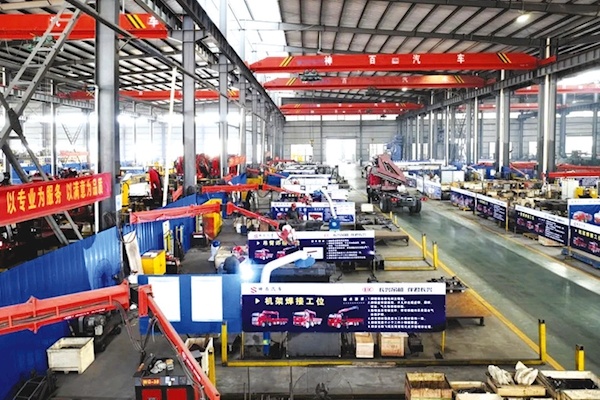 “正月初六开始,我们车间就进入了生产状态,目前日均发车15台左右。”湖北神百专用汽车有限公司行政经理宫经奇介绍,“卖得最好的产品是公司自主研发的12吨5节臂和8吨5节臂的长兴吊机,占产品总销量的60%,预计今年实现3500台的销量,目前正在研发12吨7节臂随车吊,其工作半径更大,起重臂全部伸展时,起升高度可达24米,场地适应性更强。”