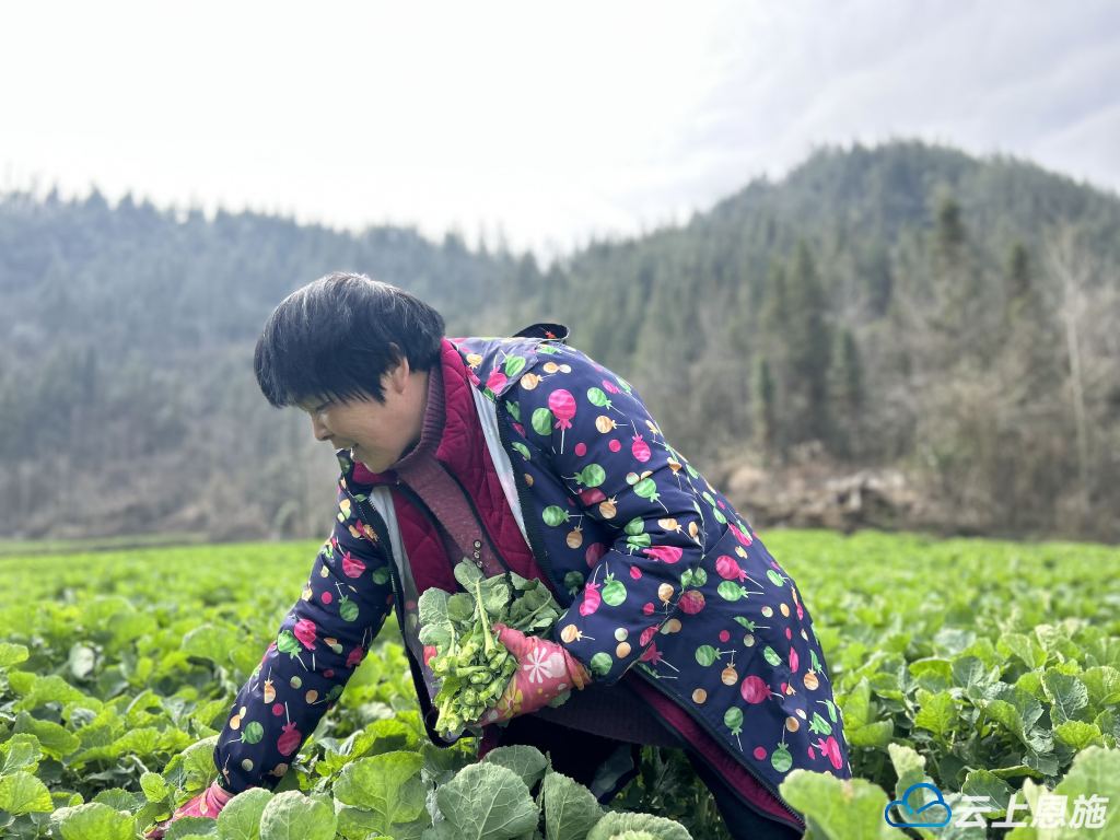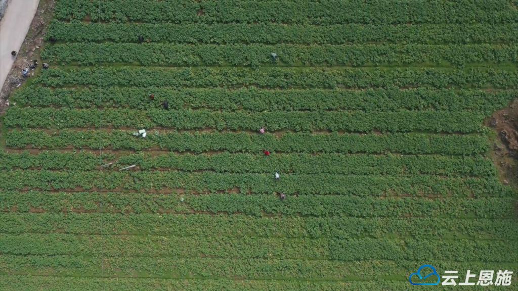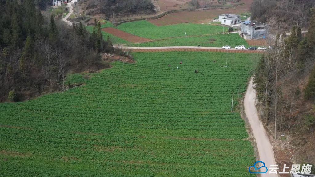“油菜薹采摘按照其成熟时间的不同,可以陆续采摘4次。我们销售方式以线上销售为主,由主播直接在田间地头直播。这种销售方式的好处很多,价格比线下要高,而且稳定,同时回购率很高。每亩可以给老百姓创收近500元。”建始县高坪镇石垭子社区党总支书记黄治泽说。