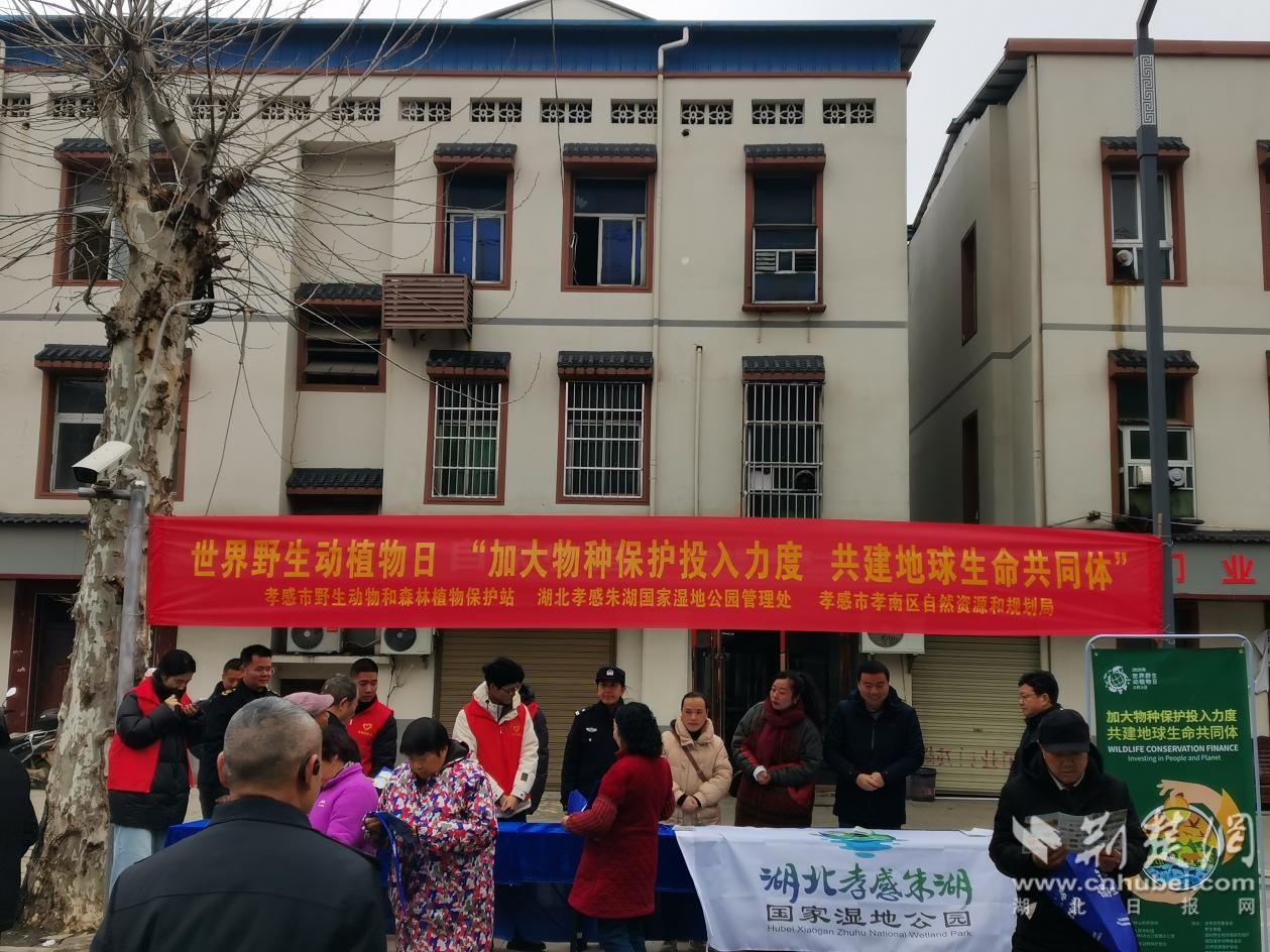 荆楚网(湖北日报网)讯(通讯员 陈张川琦)3月4日上午,孝南区自然资源和规划局联合市野生动物和森林植物保护站、朱湖国家湿地公园,以“加大物种保护投入力度,共建地球生命共同体”为主题,在朱湖集贸市场集中开展了2025年“世界野生动植物日”宣传活动,动员社会各界共同参与到野生动植物保护事业中来。