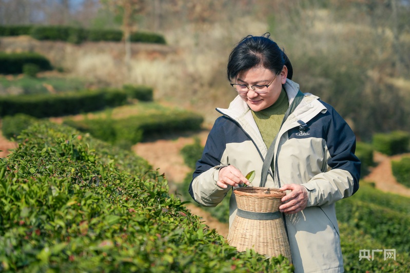 央广网孝感3月3日消息(记者左洋)最近几个月天旱,茶田注意多松土、除草……2月28日,在湖北省孝感市大悟县新城镇朱湾村,记者见到被称为“黄茶代表”的全国人大代表、新城镇朱湾村党支部书记梁云英时,她正在提醒村民们做好茶园管理维护。