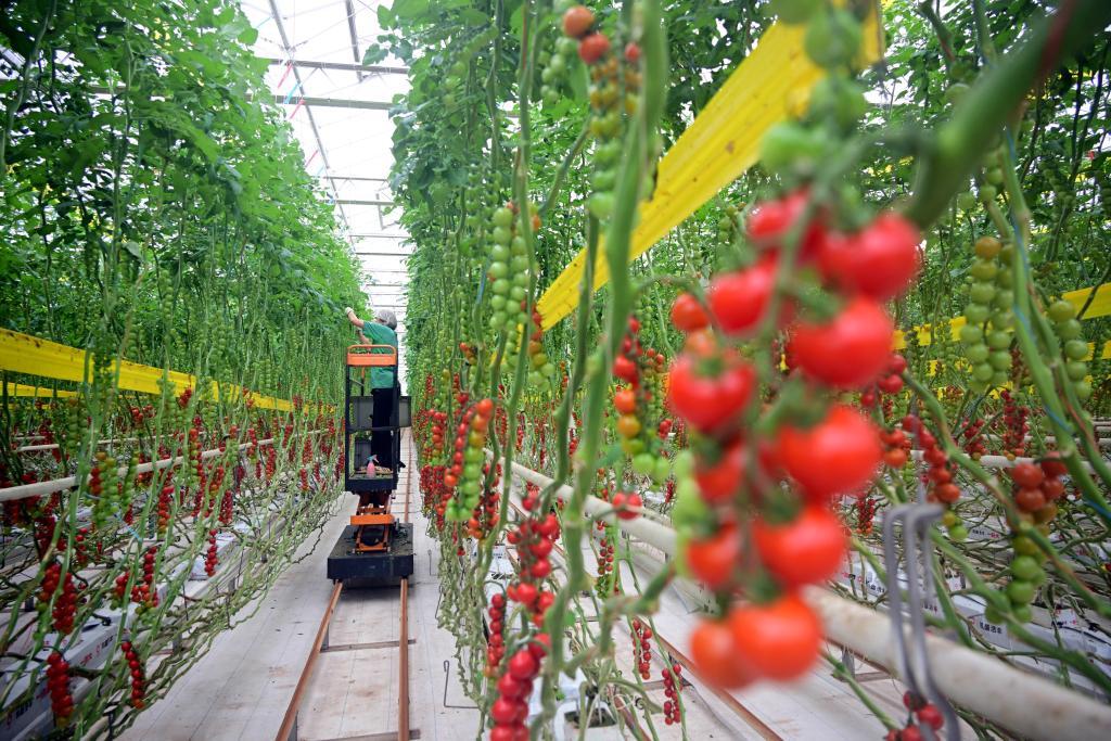 3月4日,在山东省莱西市望城街道凯盛浩丰现代设施农业产业园,员工在采摘西红柿。新华社记者李紫恒摄
