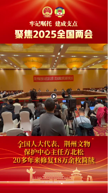 全国人大代表、荆州文物保护中心主任方北松:去年11月,习近平总书记考察湖北云梦县博物馆,仔细端详着一枚简牍,对身边工作人员说道:“古代简牍非常珍贵,是我们国家信史的重要实物佐证,要善加保护,做好研究。”这一画面深深印刻在我的脑海中,因为总书记观看的这枚珍贵的简牍,正是我们团队精心修复的。20多年来,我们团队修复有字及无字简牍18万余枚,占全国同期出土简牍的80%以上,目前,我们正在湖北荆州、湖南长沙、南昌海昏侯、云南昆明、青海西宁等地开展简牍修复工作。