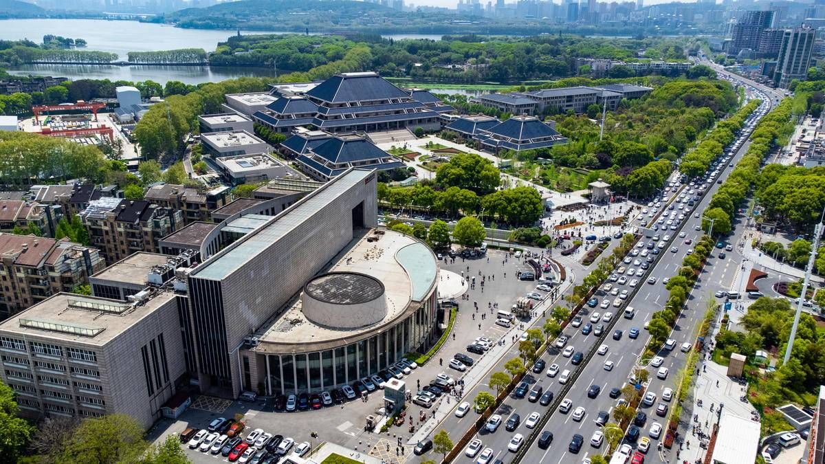 湖北省博物馆门前,前来东湖周边参观游玩的车辆川流不息。(湖北日报全媒记者 何宇欣 实习生 刘昊博 摄)