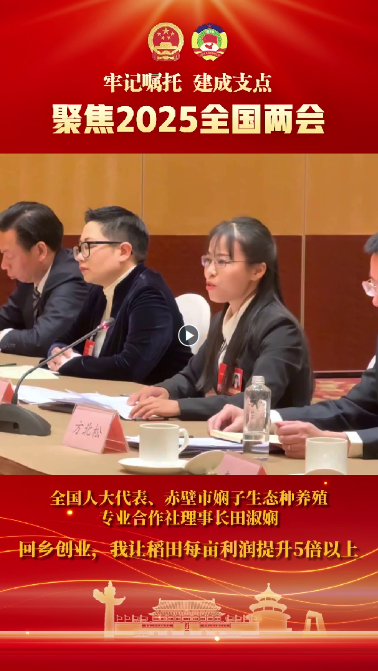 全国人大代表、赤壁市娴子生态种养殖专业合作社理事长田淑娴:大家好,我叫田淑娴,来自湖北咸宁。我是一位农民合作社理事长,硕士新农人。政府工作报告说“坚持农业农村优先发展”“完善强农惠农富农支持制度”,让我们信心倍增。去年11月,习近平总书记考察湖北、亲临咸宁,深入田间地头和基层一线看望人民群众,勉励我们“农村天地广阔,农业大有可为。发展现代农业,建设农业强国,必须依靠科技进步,让科技为农业现代化插上腾飞的翅膀”,让我们无比振奋。