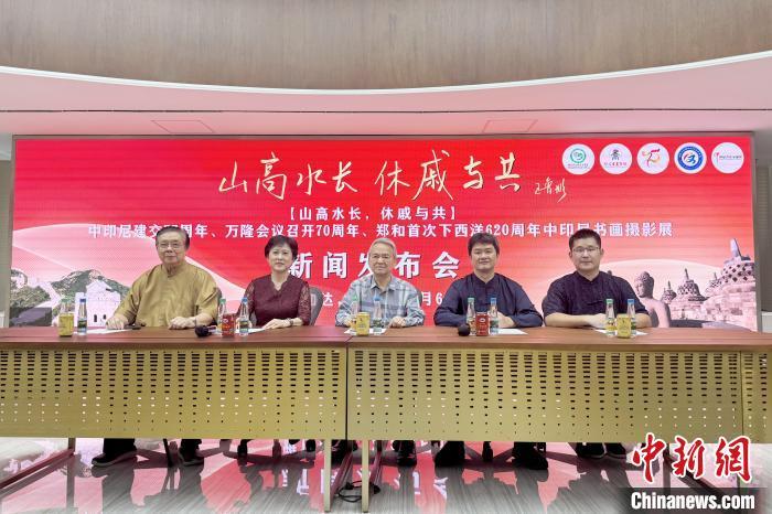 中新网雅加达3月6日电 (记者 李志全 实习生 徐裕琴)3月6日,“山高水长,休戚与共”——中印尼建交75周年、万隆会议召开70周年、郑和首次下西洋620周年中印尼书画摄影展新闻发布会在雅加达举行,印尼书法家协会主席阮渊樁、印尼书画学院院长王玉斌、印尼阿拉扎大学孔子学院中方院长王大昕、印尼永安药业集团董事长胡素丹等嘉宾出席发布会,并介绍书画摄影展的有关情况。